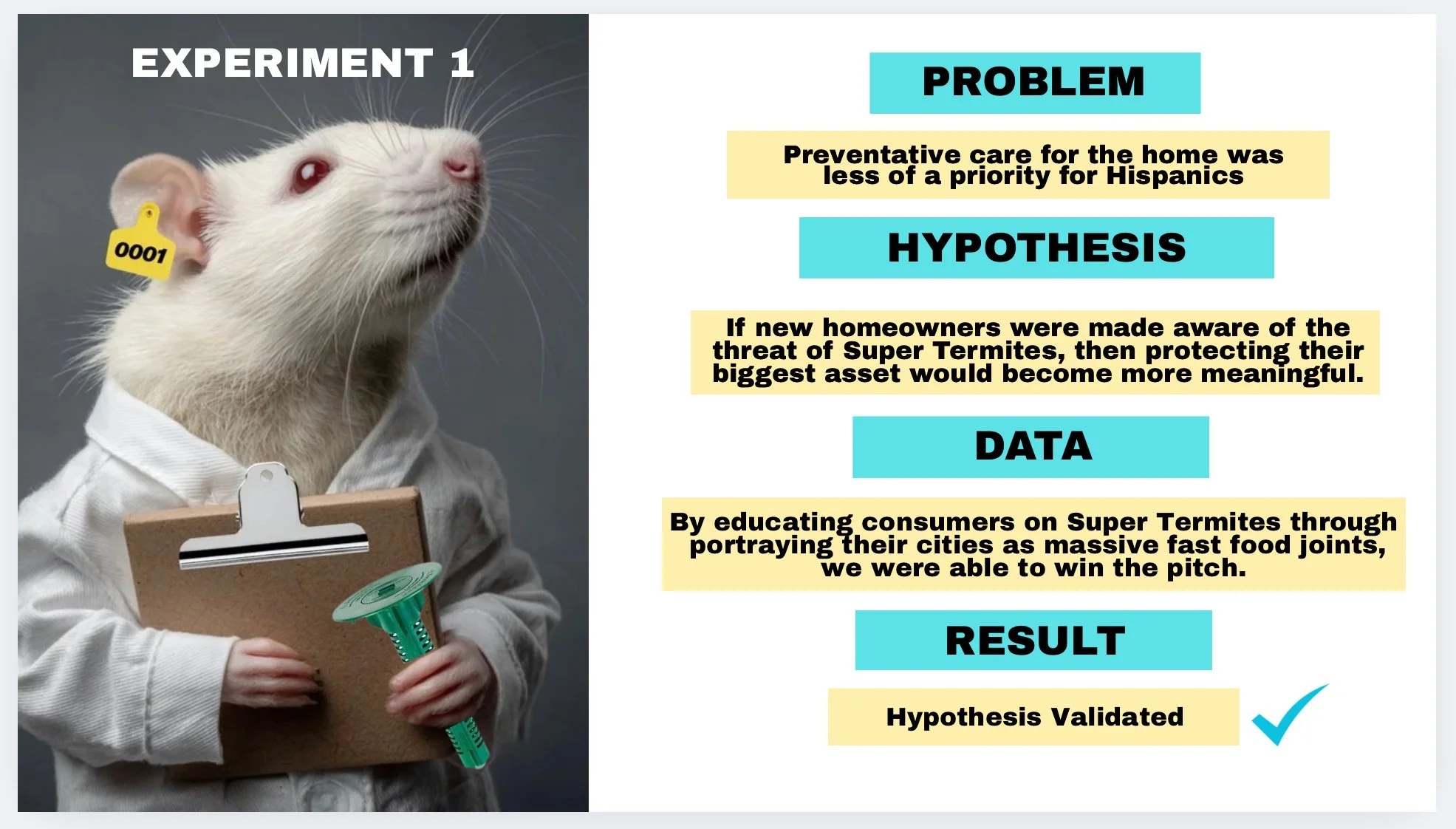 With more and more Latino families becoming first-time home owners, Sentricon, the #1 termite control system globally, saw an opportunity to expand their customer base. We came up with Quita Tu Casa Del Menu. Para Siempre to win the pitch. English Translation: Take Your Home Off The Menu. Permanently.